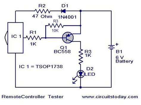 Web remote control tester | electronic schematic diagram homepage / communication / remote control tester remote control tester here is the remote control tester. Tsop1738 that catches the remote signal and displays it by turning on the led. The transmitter is basically an oscillator circuit, and the frequency.